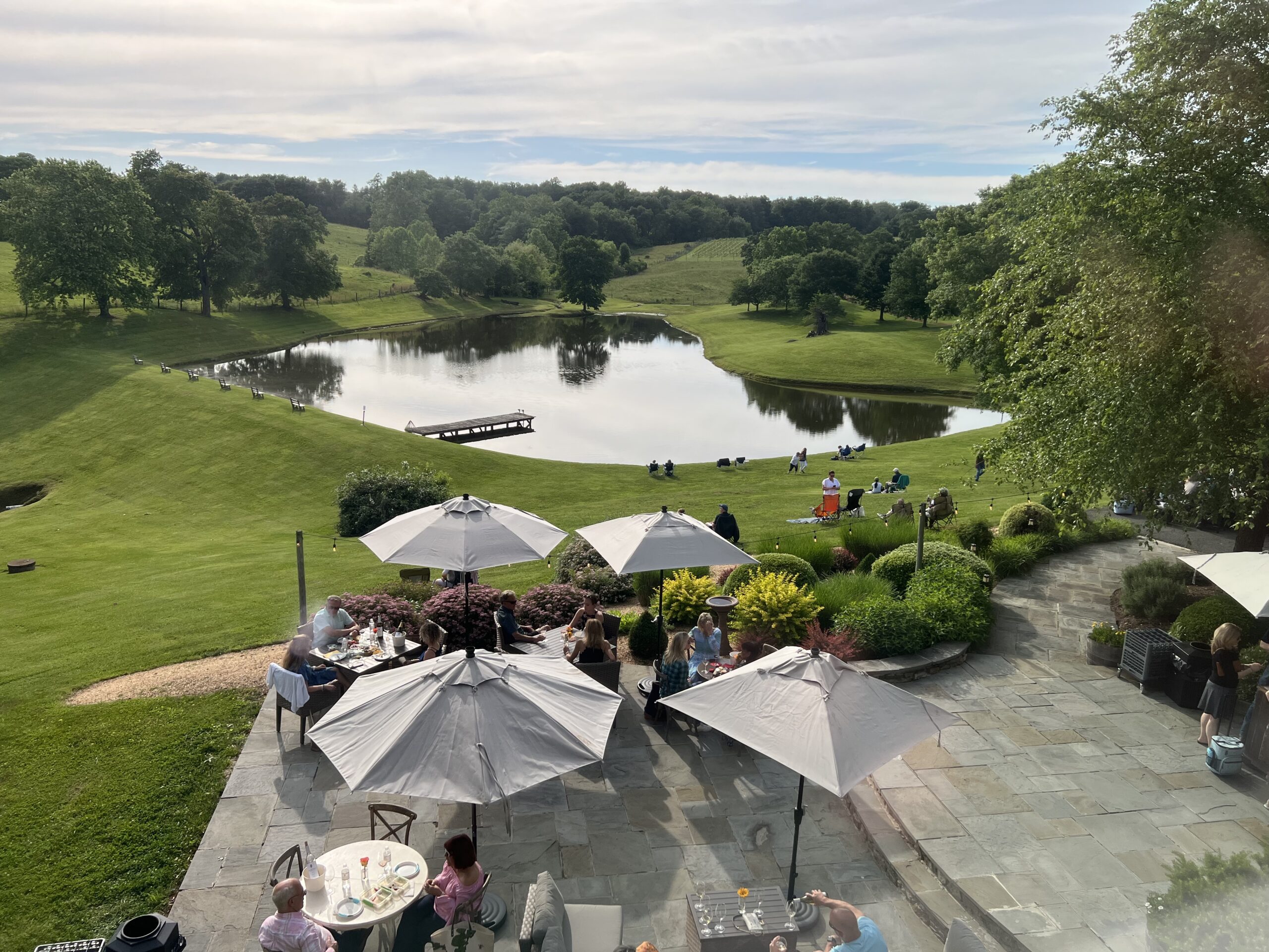 Built circa 1792, the Manor House has served as the epicenter of this land for over 230 years. With original stonework and heart pine floors, the Manor House provides any event with an authentic sense of history and a connection to the legacy of this property. With a stately dining table, built-in flat screen television, and stone fireplace, the Greenhill Room hosts private tastings, luncheons, and meetings. The adjacent Gilded Room and Winemaker’s Room, provide parlor seating that can be utilized for receptions and casual gatherings. The Manor House features a large stone patio overlooking our natural pond with ideal sunset views.